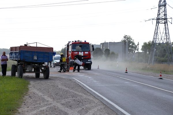 Pirmadienį, apie 12 val., prie Jurbarko, kelyje į Eržvilką, traktorių lenkęs „Volvo“ užkabino pilną grūdų priekabą. Smūgis buvo stiprus – traktorius su priekaba virto ant šono, o „Volvo“ atsidūrė rugių lauke.